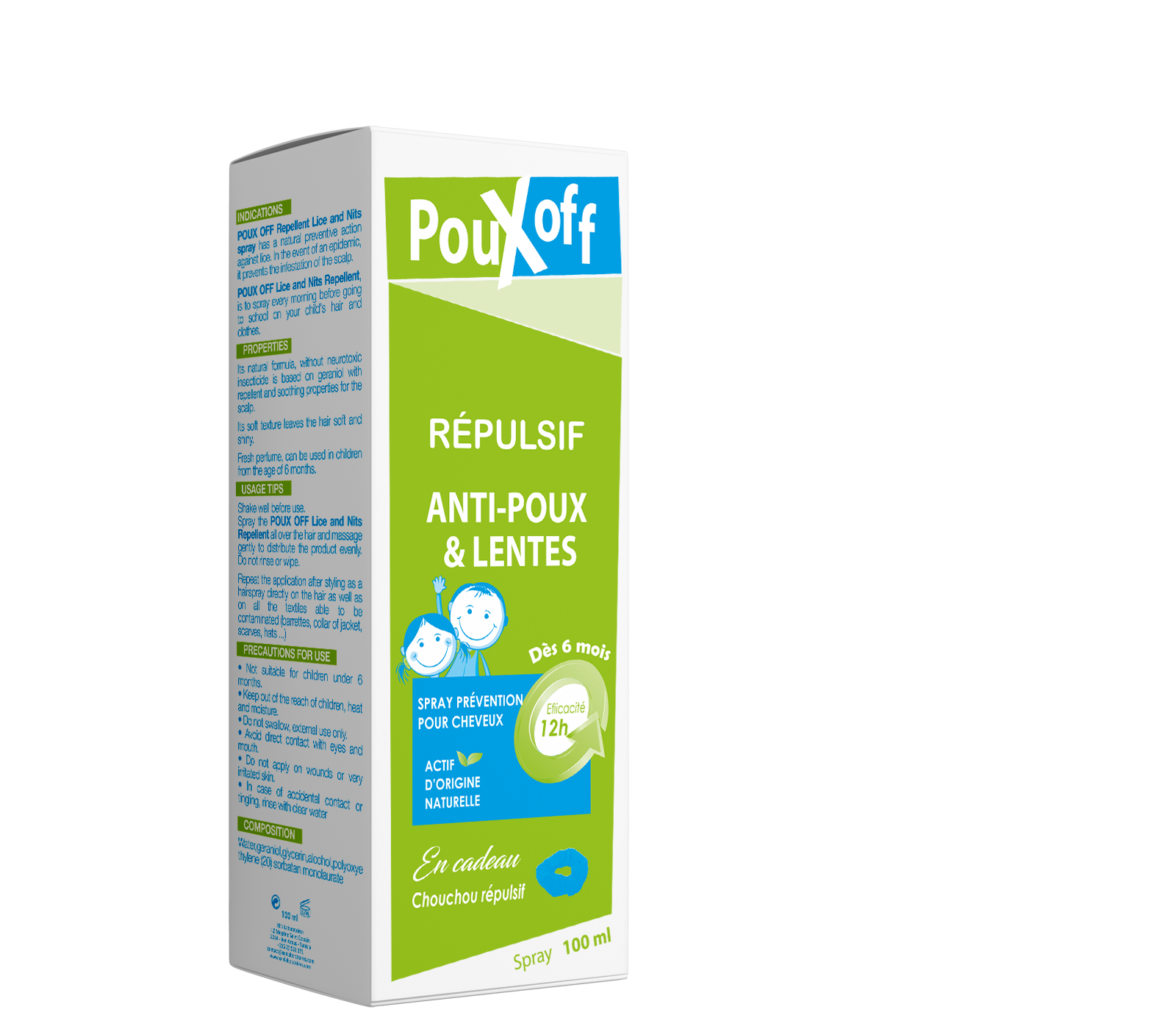 Le spray répulsif POUXOFF est facile à utiliser. Avant de l’appliquer, il est recommandé de bien agiter le flacon. Vaporiser-le ensuite uniformément sur l’ensemble de la chevelure et assez légèrement pour répartir le produit.