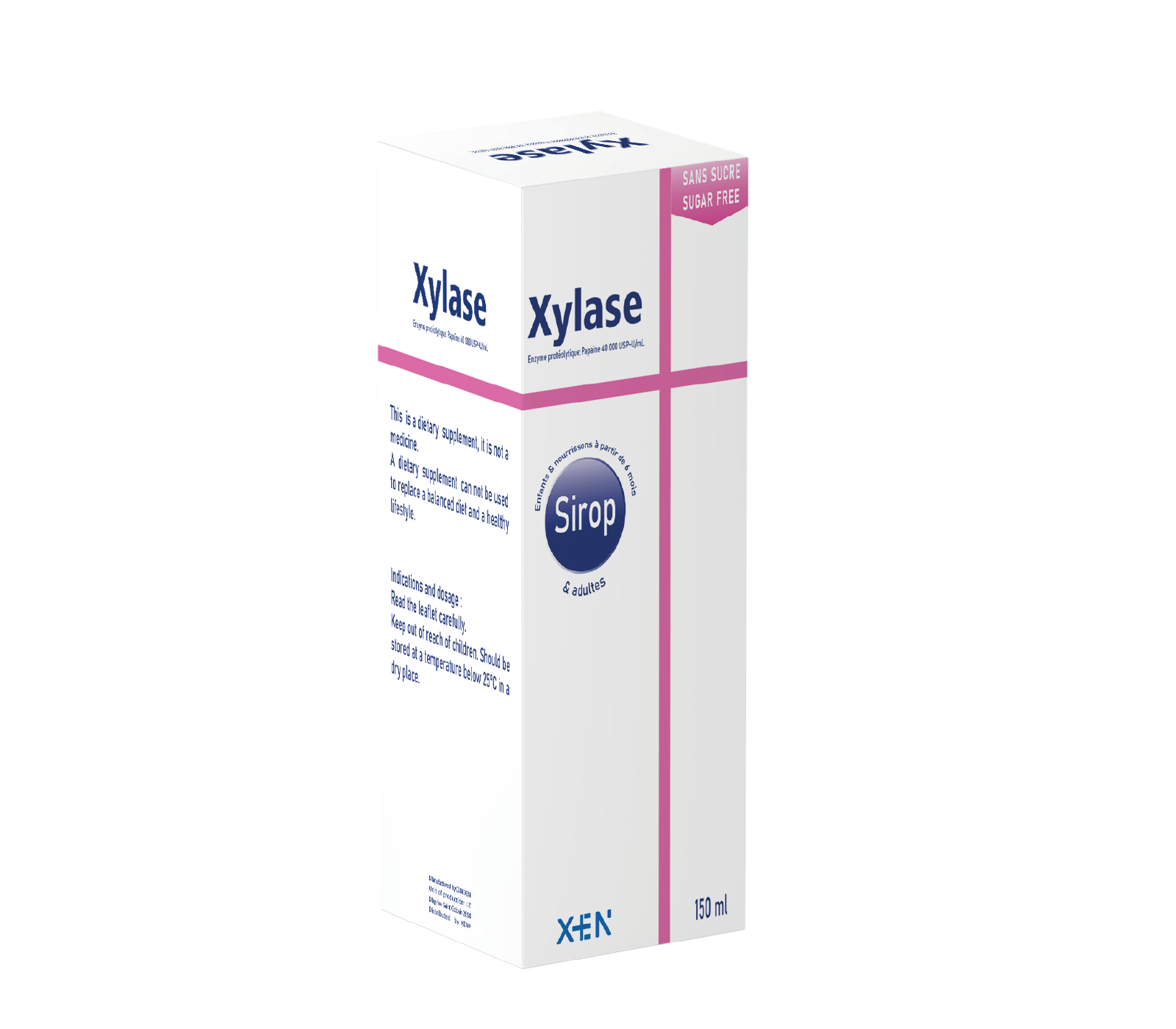Xylase est un complément alimentaire à base de papaïne, enzyme protéolytique extraite du fruit cru la papaye, possédant des propriétés antiinflammatoires et antiseptiques, dosés 40 000USP-U/mL.